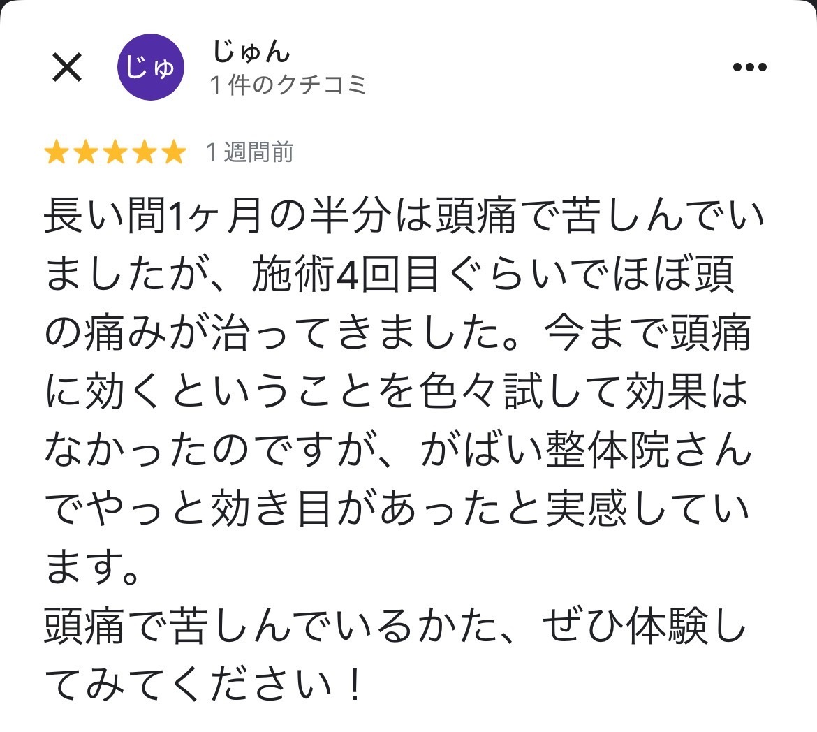 ありますがそれは他の身体の個所が痛くてです。頭痛って言うのが整体で良くなるなんて知らなくて。