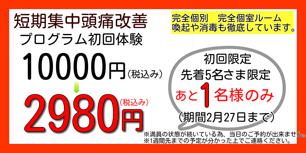 完全予約制・頭痛整体 1日限定7名様