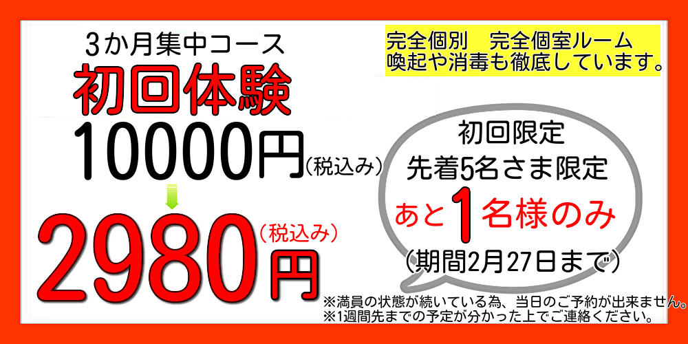 ※大変申し訳ありませんが、先着7名様以降のご予約は通常料金価格10000円を頂戴させて頂きますので、初回特典割引をご希望の方は今すぐ下記のメールお問合せファームもしくはお電話よりがばい整体院までご予約のお電話またはメールをください